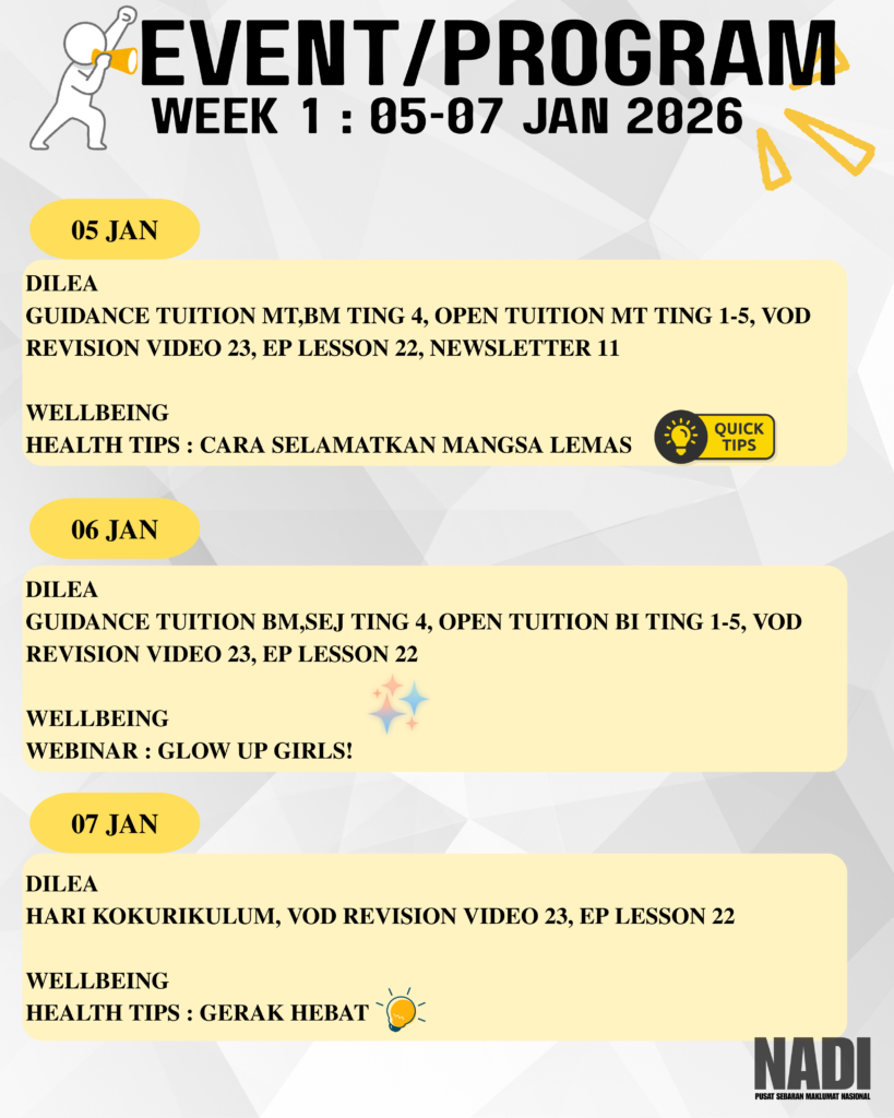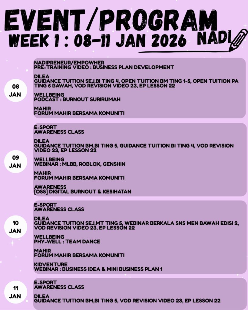 JADUAL PROGRAM 5 JANUARI 2026 – 11 JANUARI 2026