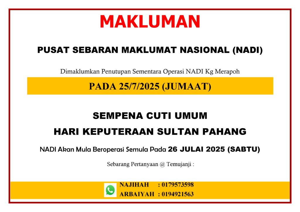 NOTIS PENUTUPAN NADI SEMPENA CUTI UMUM HARI KEPUTERAAN SULTAN PAHANG