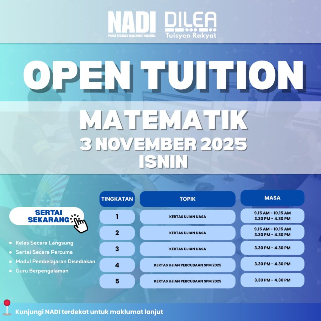 Jom sertai Open Tuition bersama NADI DILEA: Tuisyen Rakyat! 🚀